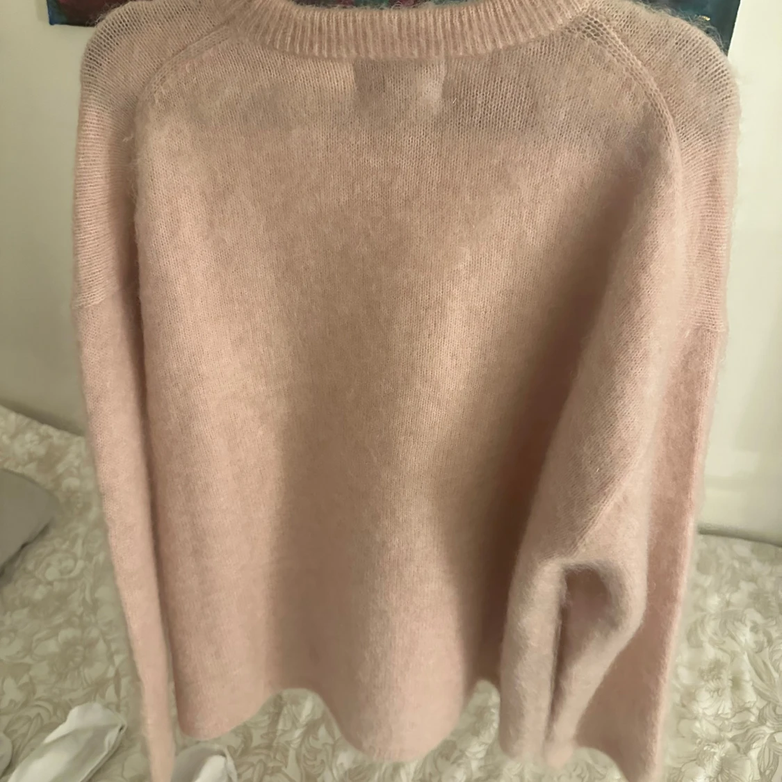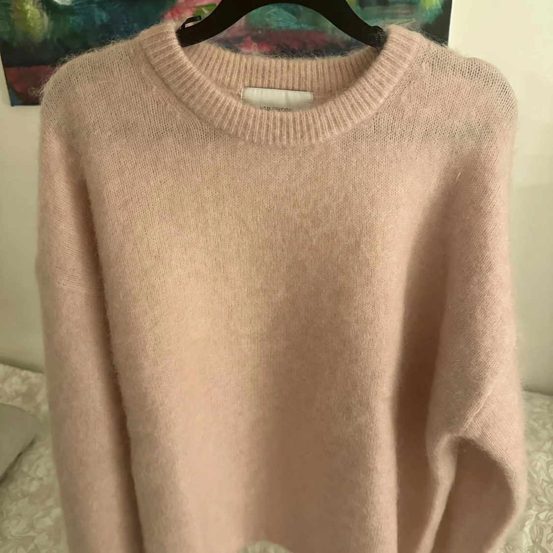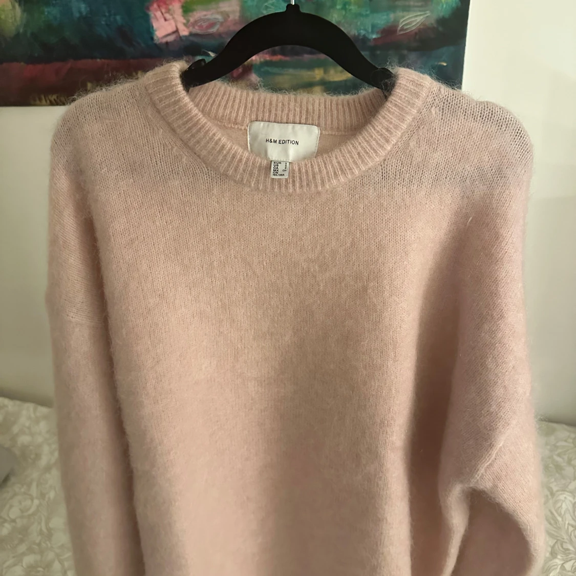 Säljer denna jättesnygga populära stickade mohair tröja från HM. Nyskick! Storlek S. Perfekt nu till höst/vinter!💓🍂