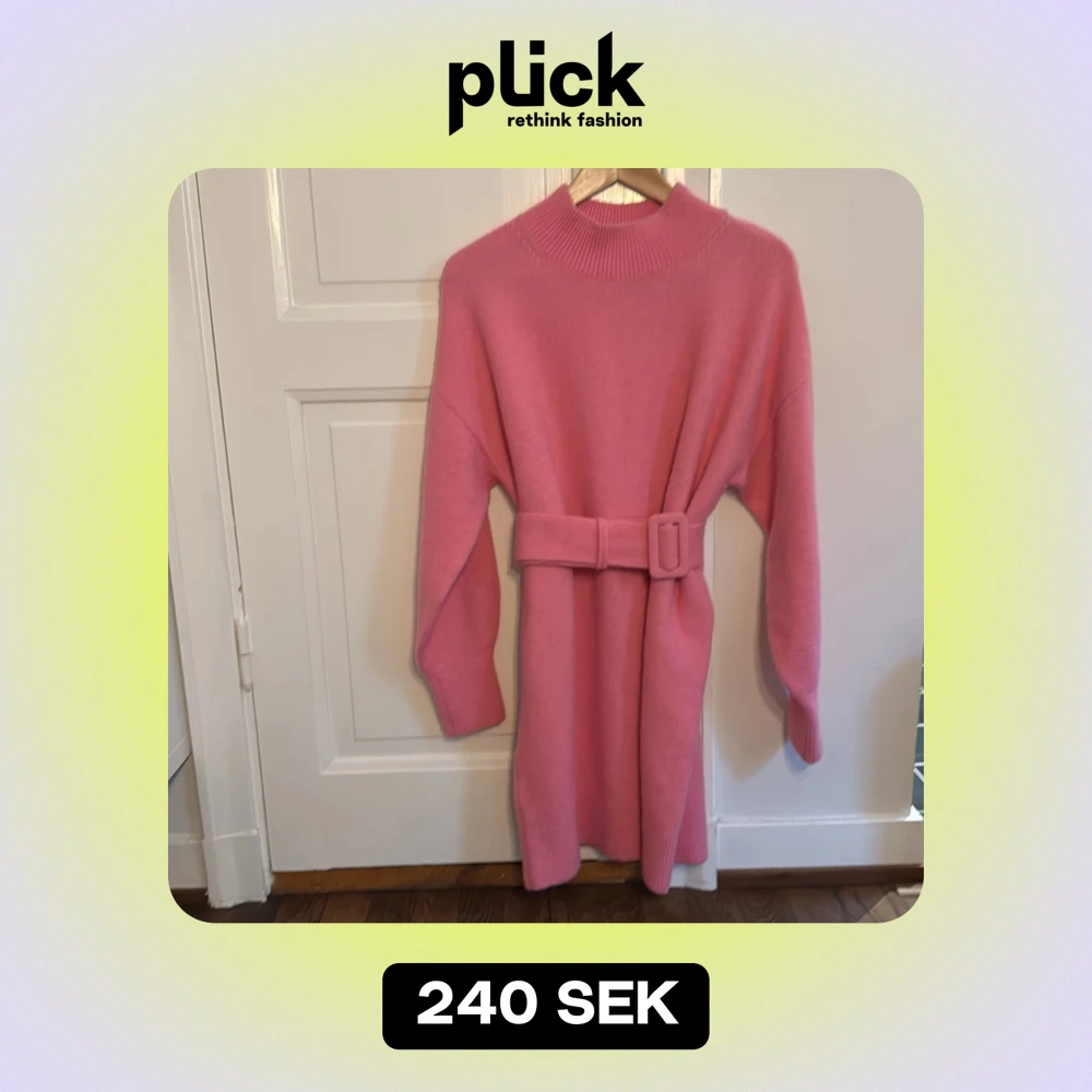 Superfin rosa stickad klänning från & Other Stories i storlek S. Den har långa ärmar och ett matchande bälte i midjan för en snygg siluett. Perfekt för höst och vinter, både mysig och stilren! Bältet kan tas loss! Endast testad.