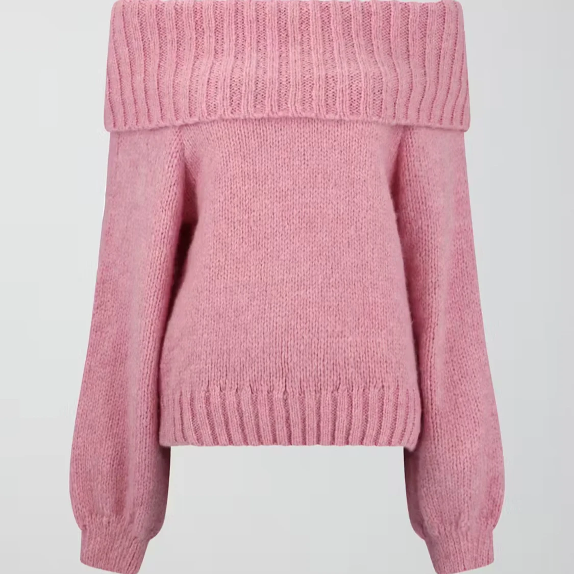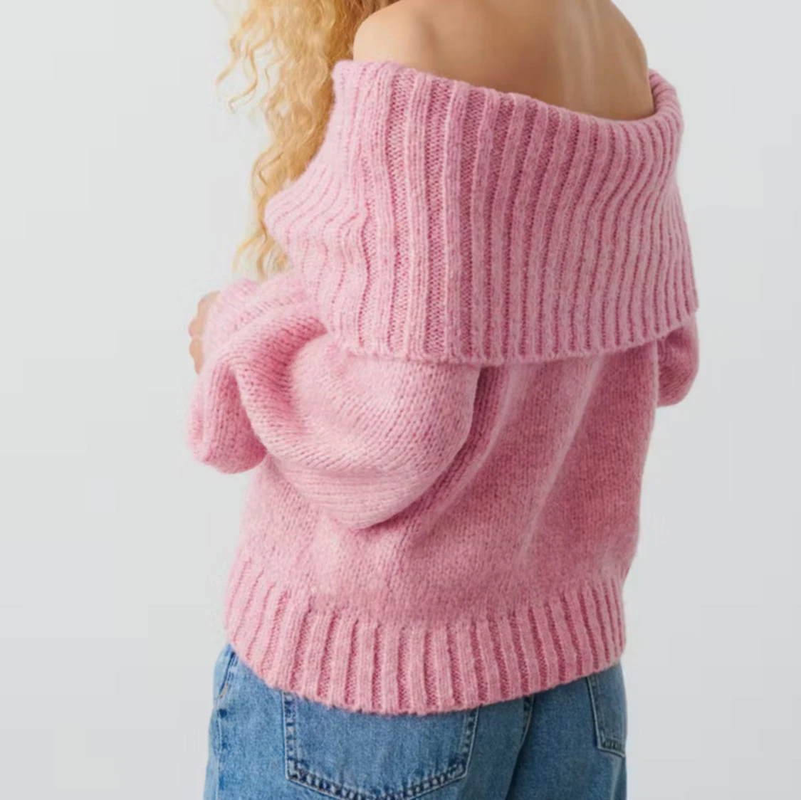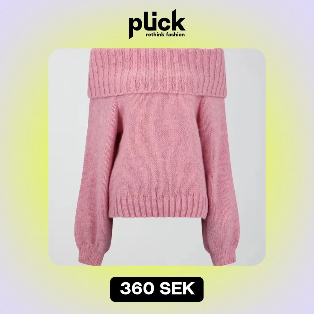 En rosa stickad offshoulder tröja från Gina Tricot. Använd 1 gång så i nyskick! Går inte längre att köpa i butik💕💕