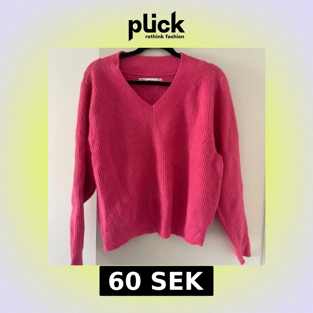 Säljer en stickad rosa tröja från Only med v-ringning och långa ärmar. Perfekt för att liva upp garderoben med en färgklick. Tröjan är mjuk och skön, passar till många olika outfits. Perfekt en sommarkväll