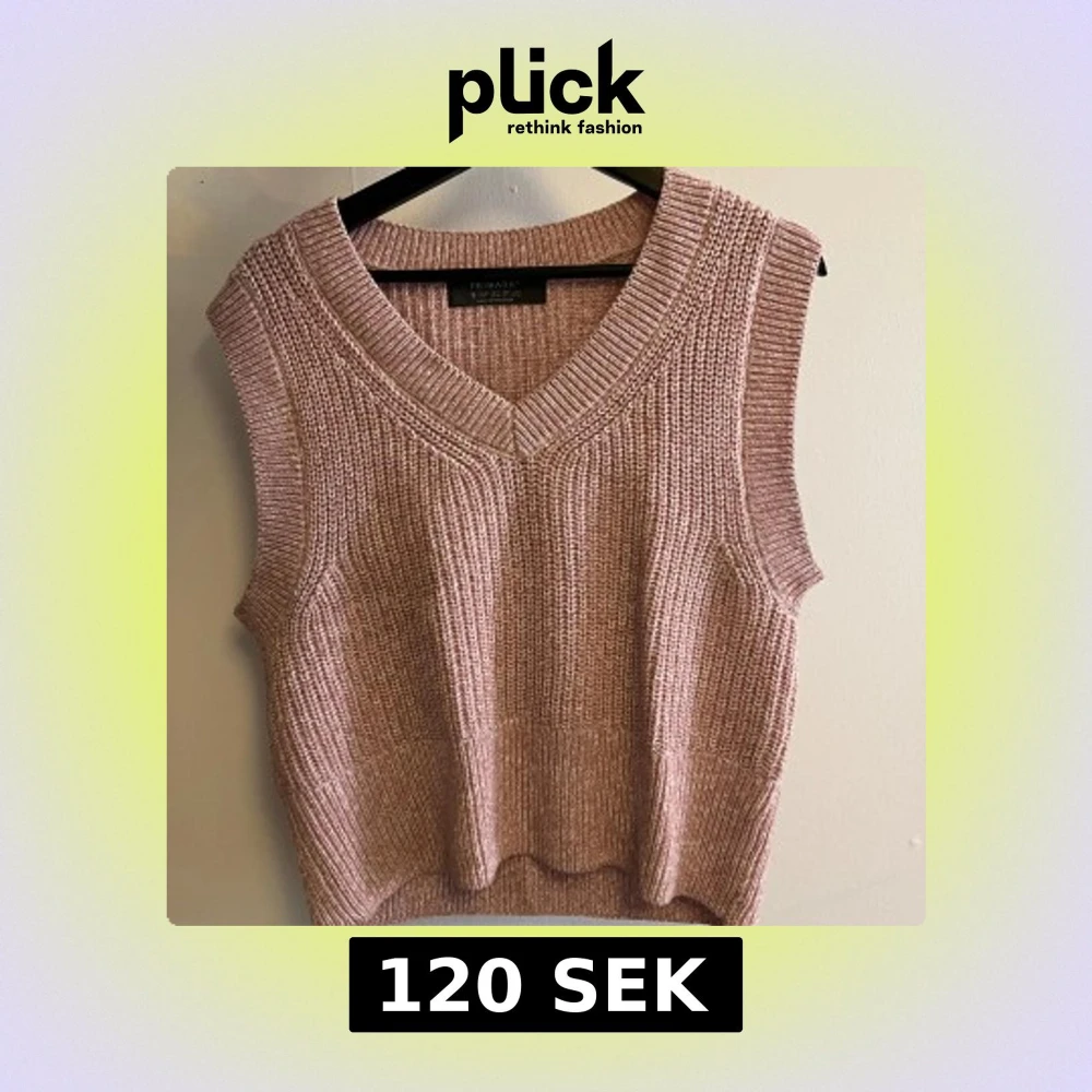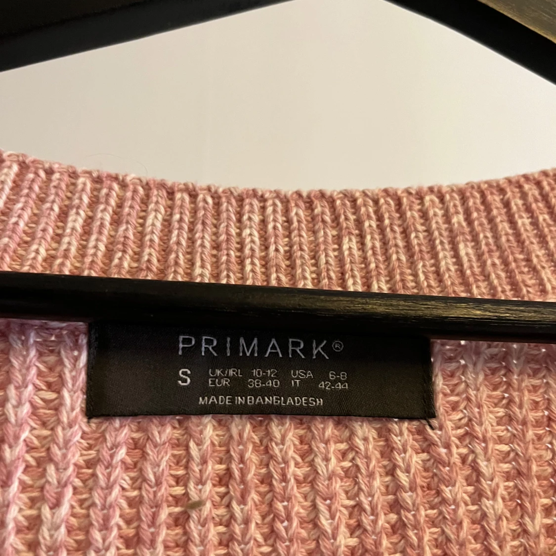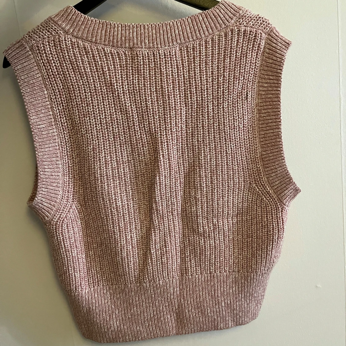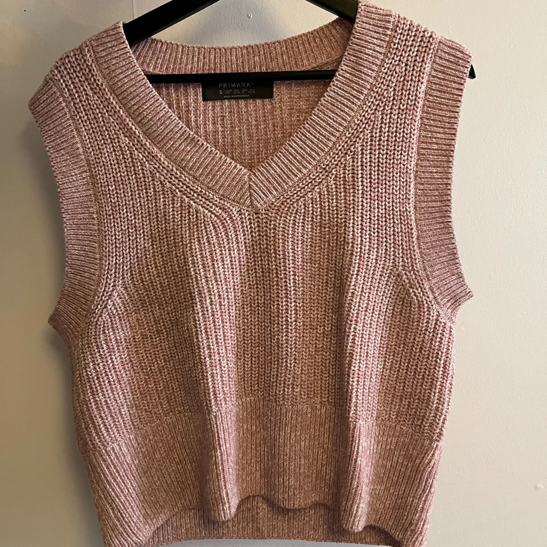 En söt, stickad väst i ljusrosa från Primark. Västen har v-ringning och breda ribbade kanter vid hals och ärmhål. Perfekt att styla över en skjorta eller t-shirt för en trendig lager-på-lager-look.