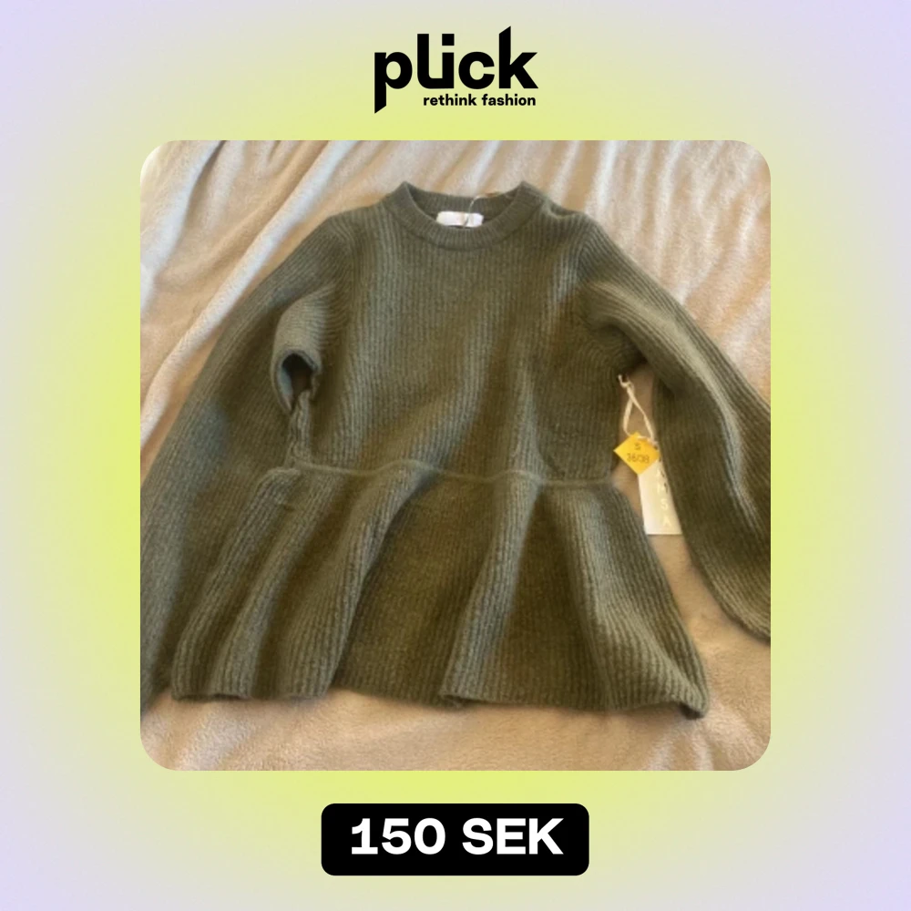 En mörkgrön stickad tröja som svänger ut lite där nere och har ballong armar, oanvänd.