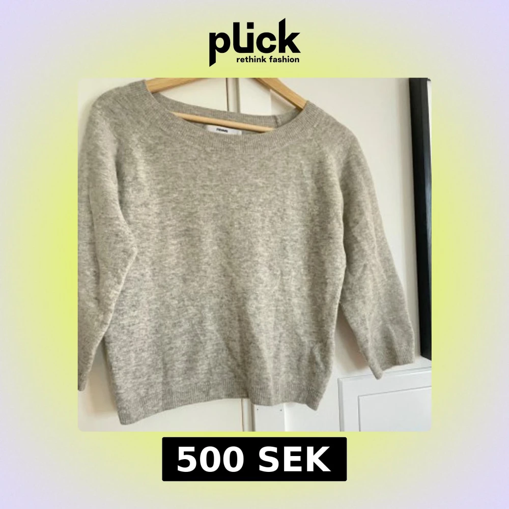 Fin stickad tröja i Lammull med trekvarts armar och en hög urringning. Sparsamt använd. Hör av dig för frågor!