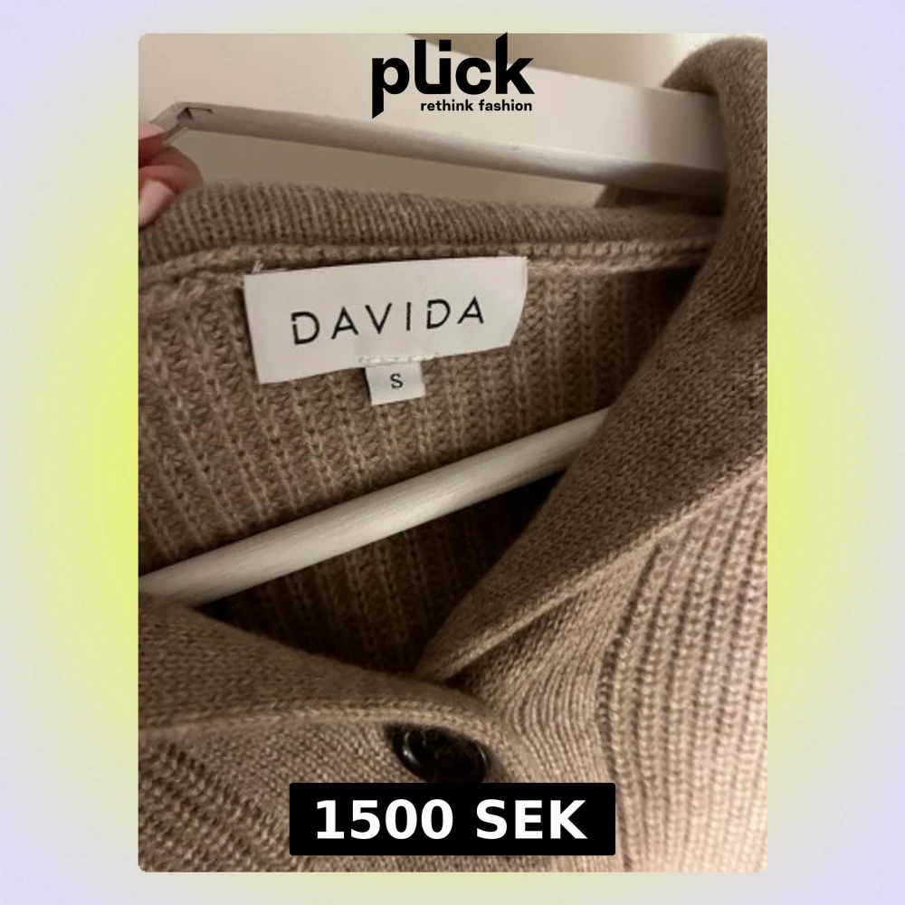 Supermysig beige stickad kofta från Davida i storlek S. Koftan har ribbstickat material, stora svarta/ bruna knappar framtill och en bred krage. Väldigt mysig, endast använd ca 2 gånger så inga noppor.