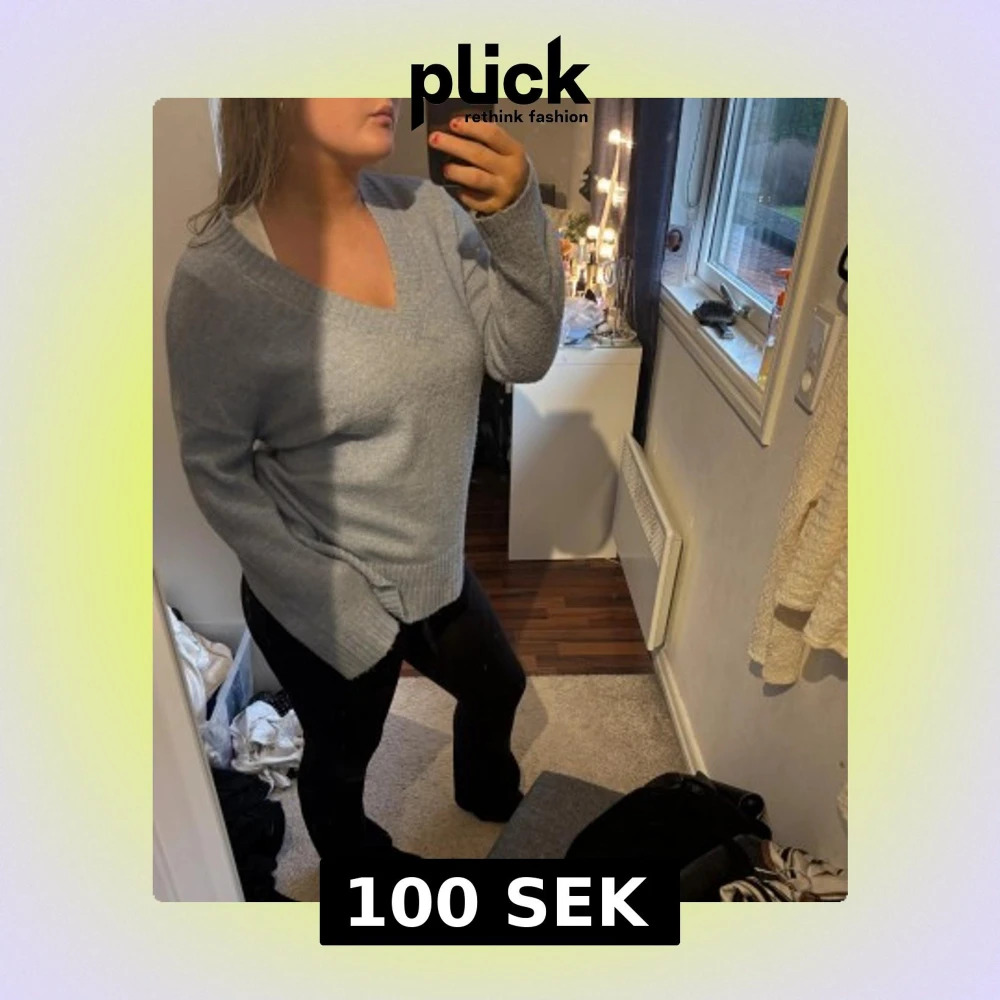 Mysig ljusgrå stickad tröja med v-ringad hals och långa ärmar. Vid snabb affär kan priset diskuteras. Har du frågor, bara att skriva💞