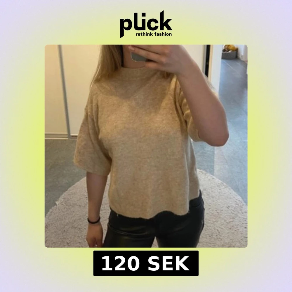 Beige stickad tröja med kort ärm