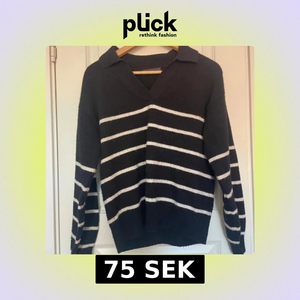 Tunn stickad tröja med krage upptill och långa ärmar. Den är hanska nopprig men utöver det är den i bra skick.