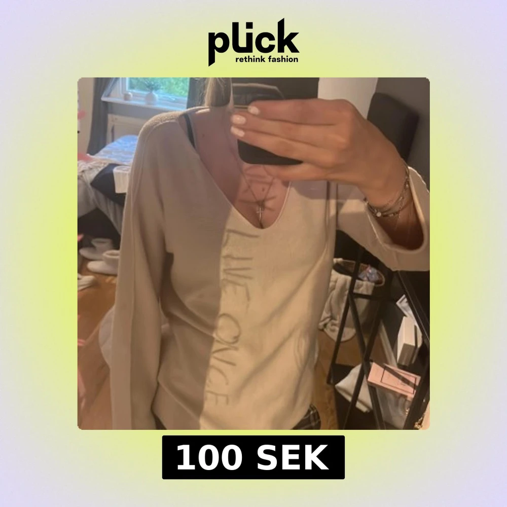Säljer en beige v-ringad stickad tröja från Edith. Tröjan har lång ärm och en loose passform, köpt för 700, använder inte derför jag säljer!💕 använd ca 3 ggr men helt som ny inga fläckar eller nått sånt! Jätte fin och passar bra till jeans