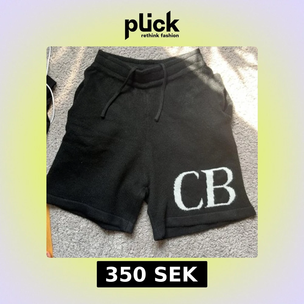 Svarta stickade shorts från Cole Buxton med vita initialer 'CB' på vänster ben. Shortsen har dragsko i midjan och två bakfickor. Perfekta för en avslappnad och trendig stil. Pris kan diskuteras
