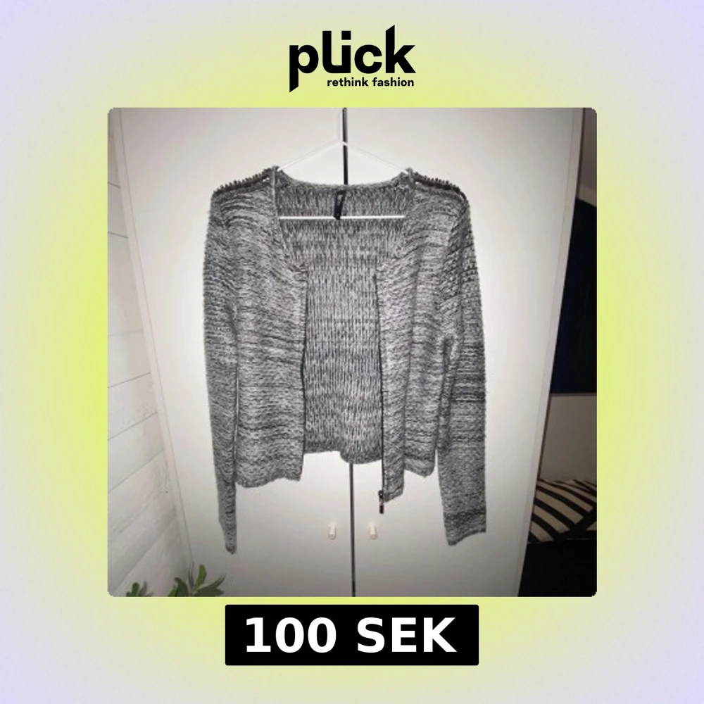 Säljer en snygg grå stickad kofta från Flame i storlek S. Koftan har långa ärmar och dekorativa detaljer vid axlarna. Perfekt för kyliga dagar och ger en stilren look.