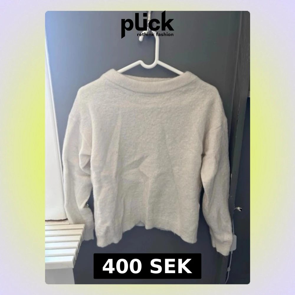 Mysig vit stickad tröja från Redgreen med rund halsringning och ribbade muddar vid ärmslut och nederkant. Enkel och stilren. Materialet känns mjukt och bekvämt. Finns inte att köpa på deras hemsida längre, kostar 2000 ny