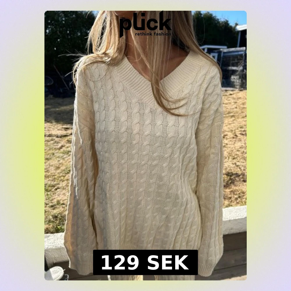 Kabelstickad tröja i beige färg med v-ringning och avslappnad passform. Tröjan har långa ärmar och ribbade muddar vid ärmslut och nederkant. Perfekt för lager på lager och en chill look. 💕💕