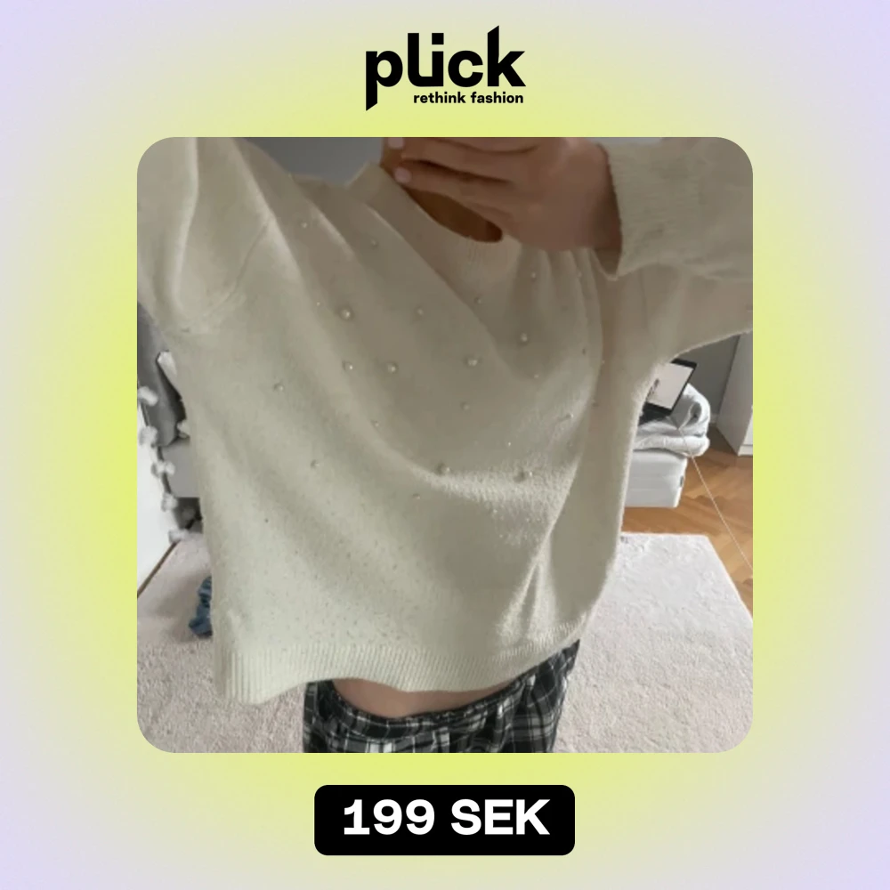Krämvit stickad tröja med pärlor. Storlek: S. Priset kan diskuteras