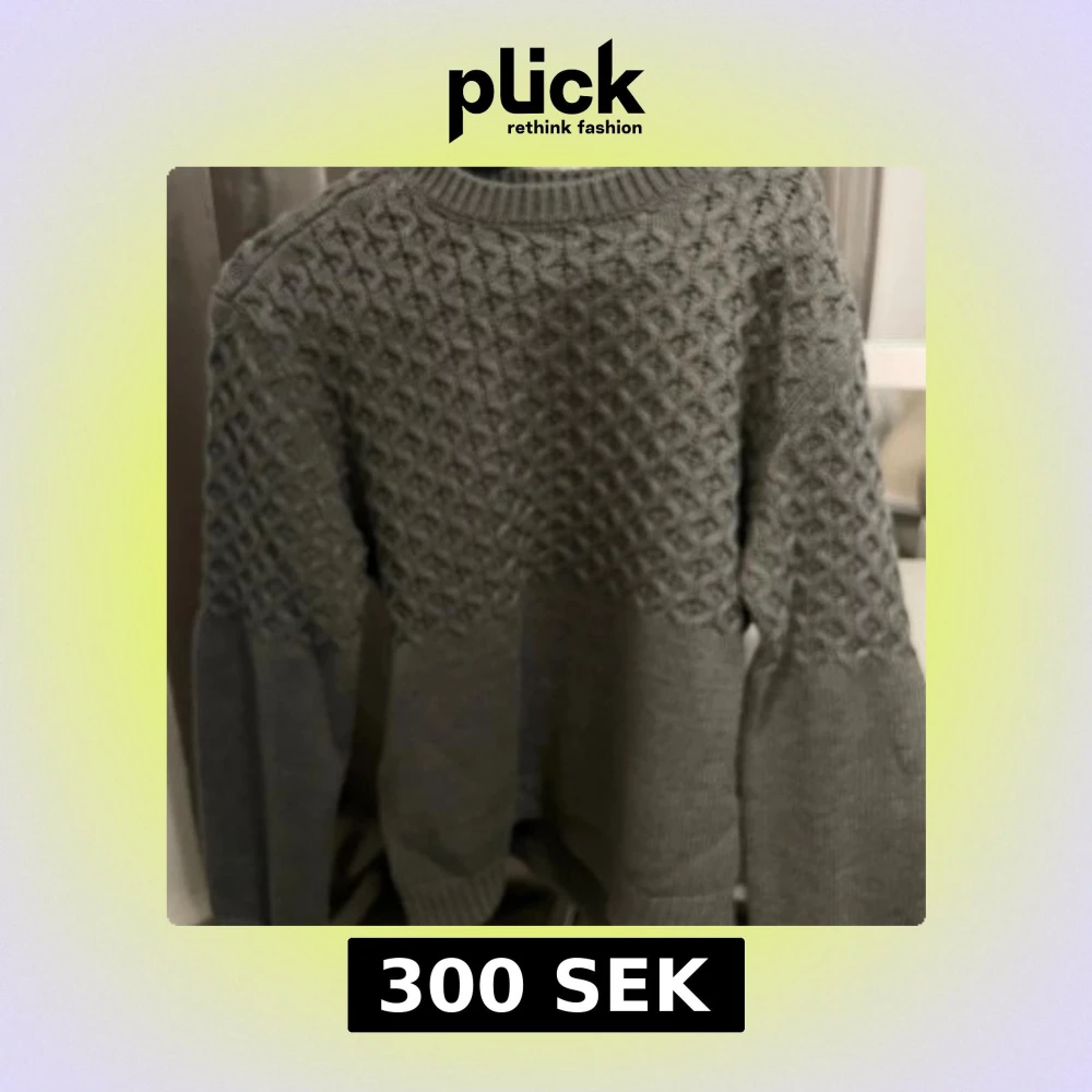 Säljer en grå stickad tröja med snyggt strukturmönster över bröst och ärmar. Tröjan har rund hals och långa ärmar med ribbade muddar. Perfekt för dig som gillar stilrena och mysiga plagg med lite extra detalj på ovansidan.