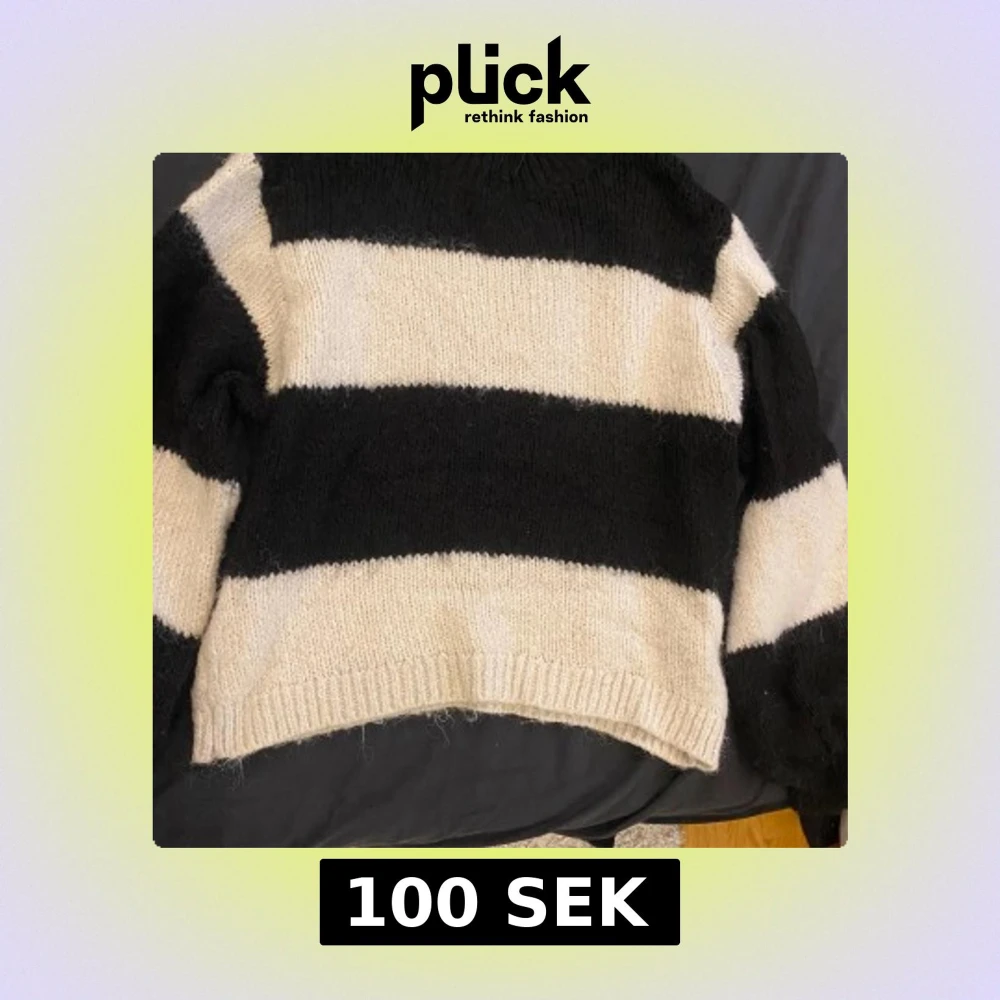 Säljer en stickad tröja med breda svarta och vita ränder. Tröjan har långärmade och en klassisk rund hals. Perfekt för dig som gillar en chill och lite edgy stil. Materialet är mjukt och ger en mysig känsla.