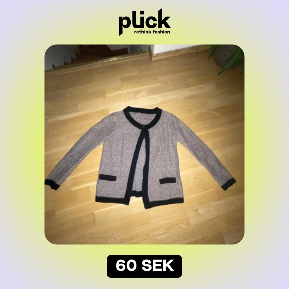 Stickad beigebrun/svart kofta köpt från sellpy men kommer inte till användning. Använd gärna köp nu knappen