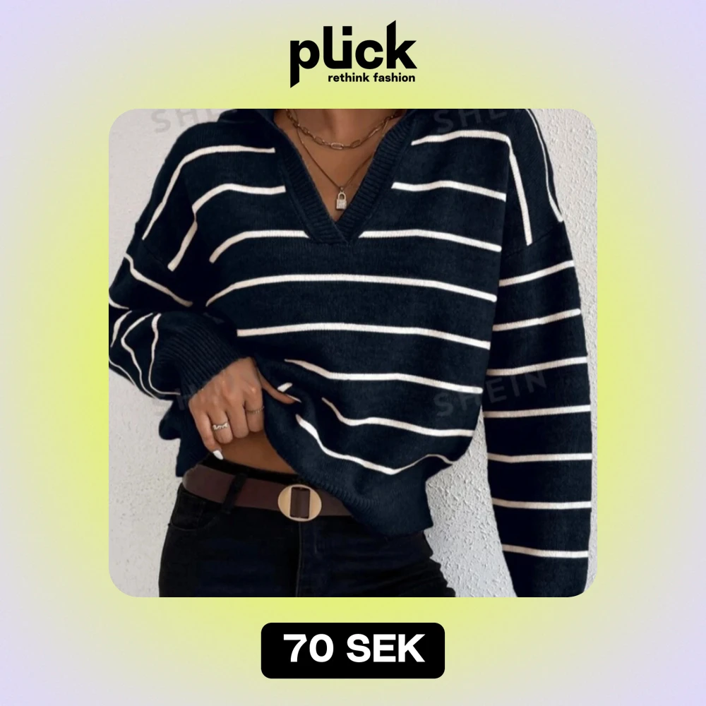 Marin blå och vit randning stickad tröja, använd två gånger. Säljer för att den inte passar mig💕 Förlåt för dåligt ljus!!!