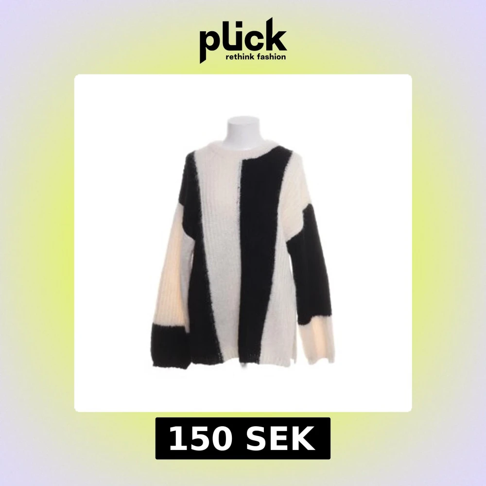 Snygg stickad tröja från ASOS DESIGN i storlek S. Tröjan har breda svarta och vita ränder, rund hals och långärmad passform. Materialet är mjuk och fluffig polyester som ger en cozy vibe. Perfekt för dig som gillar statement-plagg med grafisk look.