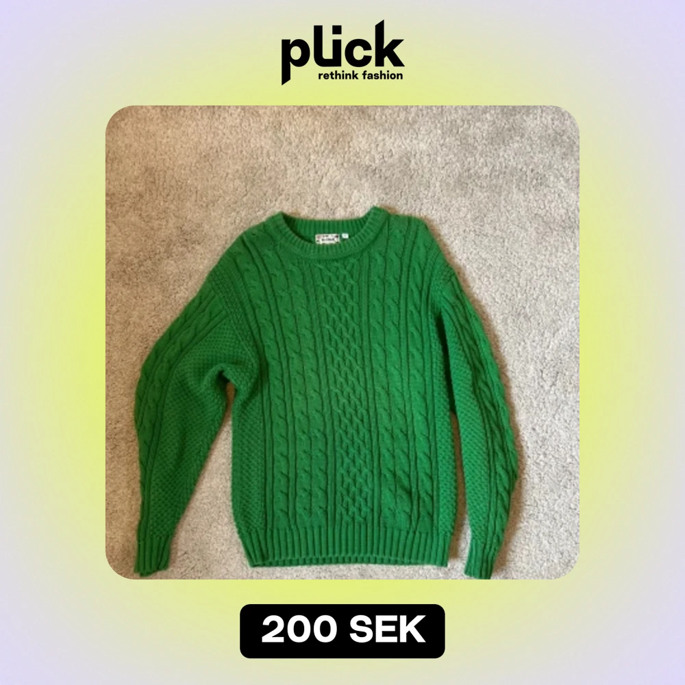 Säljer en superfin grön stickad tröja från McONeill. Den har ett snyggt flätmönster och är perfekt för kyliga dagar. Tröjan är långärmad och har ribbade muddar vid ärmslut och nederkant. Perfekt för höst och vinter!