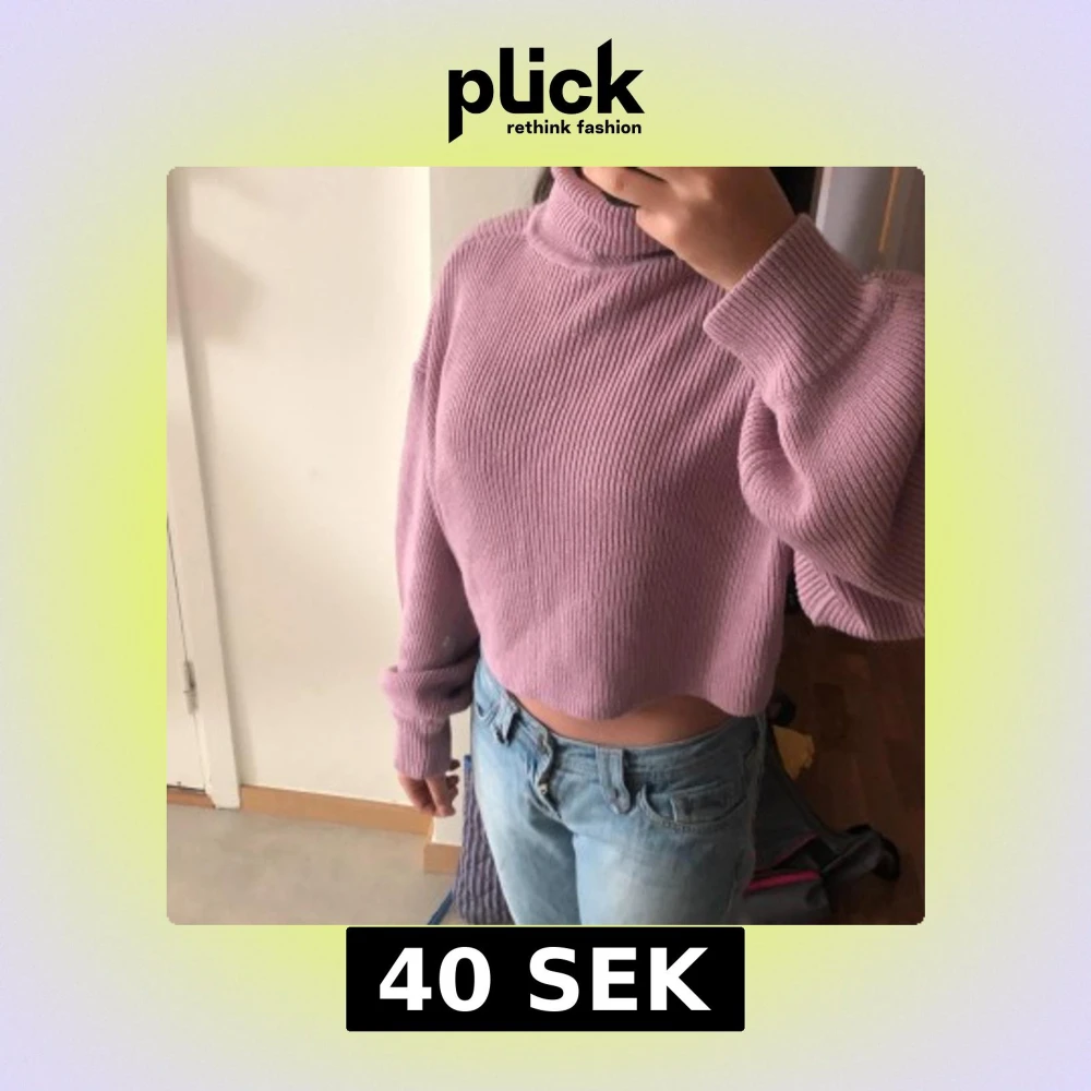 Superfin ljuslila croppad polotröja från H&M Divided. Tröjan är ribbstickad med lång ärm och har en loose passform som ger en chill vibe. Materialet är 100% akryl och den höga kragen gör den extra mysig. Perfekt att styla med jeans eller kjol.