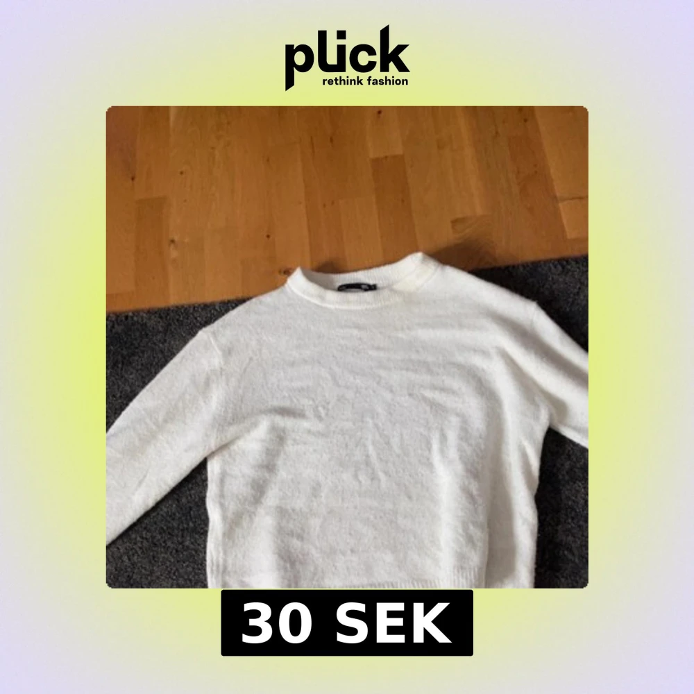 Mysig vit stickad tröja med rund halsringning och långa ärmar. Perfekt för lager-på-lager och enkel att matcha med olika outfits.