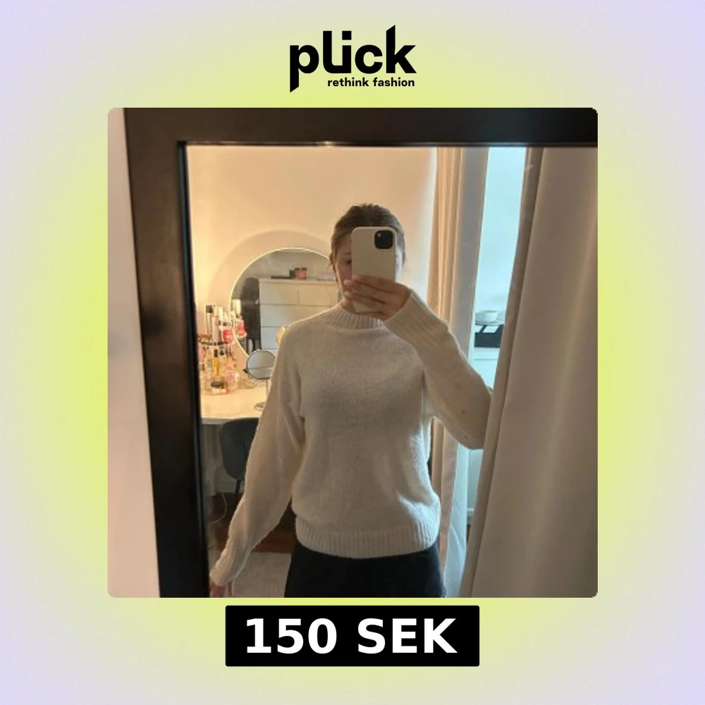 Mysig vit stickad tröja med rund halsringning och långa ärmar. Tröjan har en enkel och clean design med ribbade muddar vid ärmslut och nederkant. Perfekt för lager-på-lager och chill dagar. Nypris 500kr
