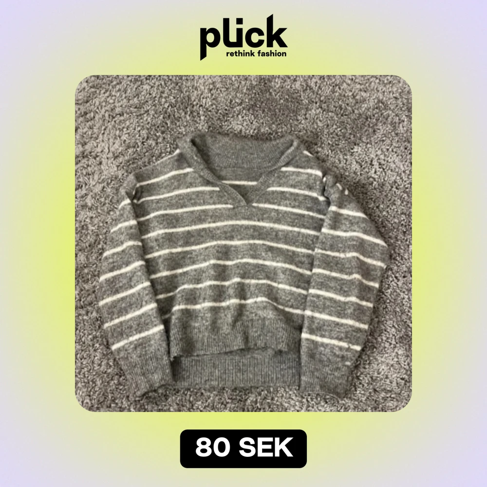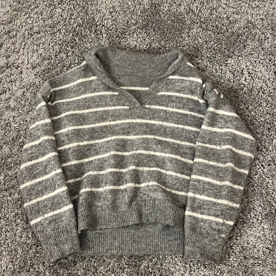Grå randig stickad tröja från shein, använd fåtal gånger och har inga defekter💗