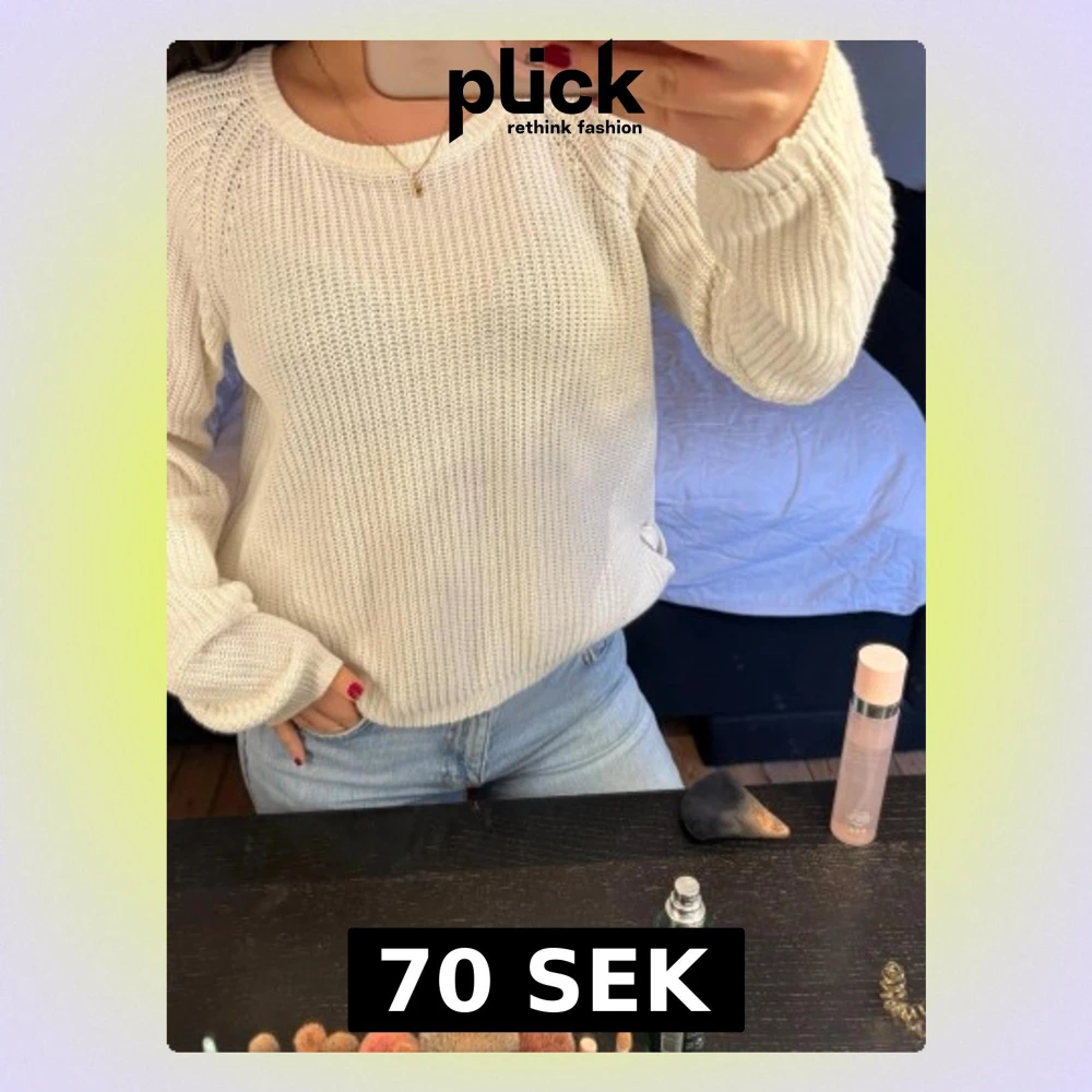 Säljer en vit stickad tröja💞 Tröjan har en snygg detalj med knytband i sidan