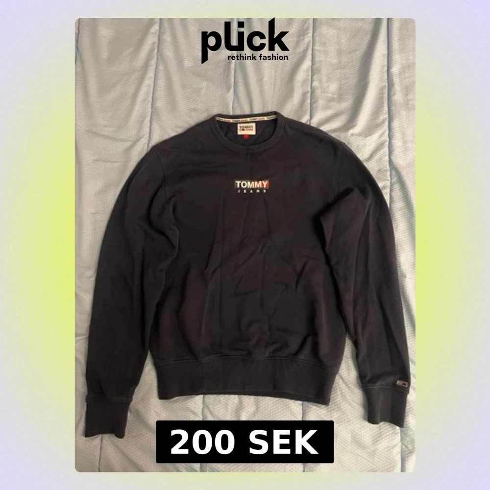 Hej, jag säljer en mörkblå tröja från Tommy Jeans i storlek S men jag skulle säga att den är stor i storleken så egentligen är det storlen M. Tröjan har varit använd ganska ofta men är i väldigt bra skick ändå. Tröjan är skön och varm och sitter bra på kroppen.