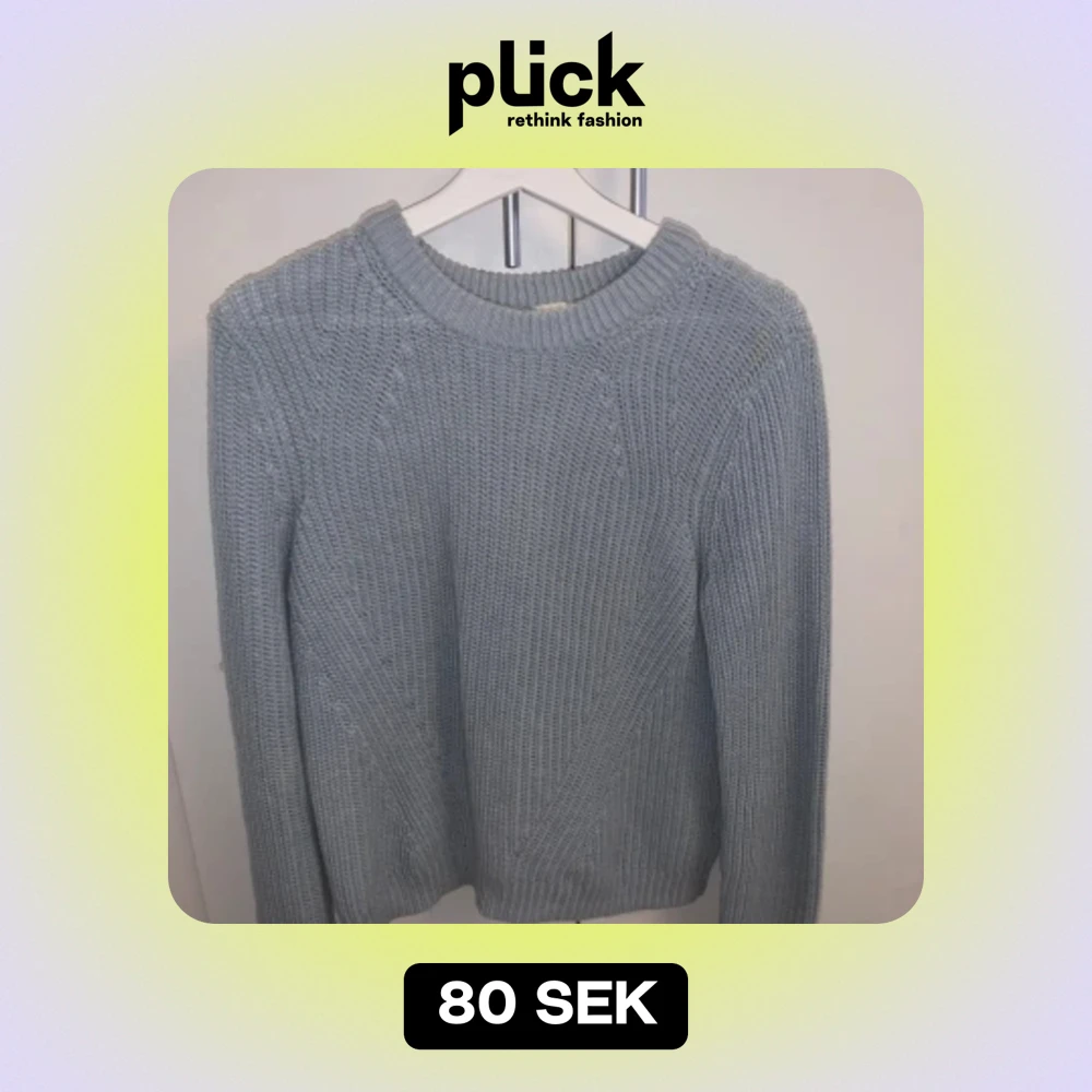 Ljusblå stickad tröja i storlek S men är ganska stor så mer som en M
