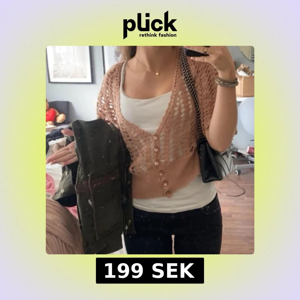 Säljer en rosa stickad kofta med korta ärmar och knappar framtill. Perfekt för lager-på-lager och ger en avslappnad look. Passar bra till både jeans och klänningar.