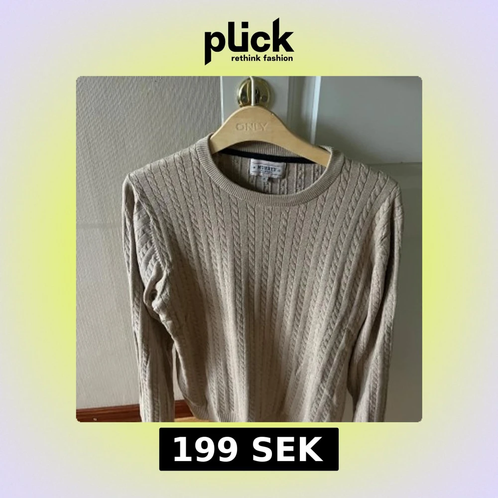 Snygg beige kabelstickad tröja från Murrey med rund halsringning och långa ärmar. Perfekt för lager-på-lager och passar till både jeans och kjol. Mjuk och skön känsla tack vare bomullsmaterialet.