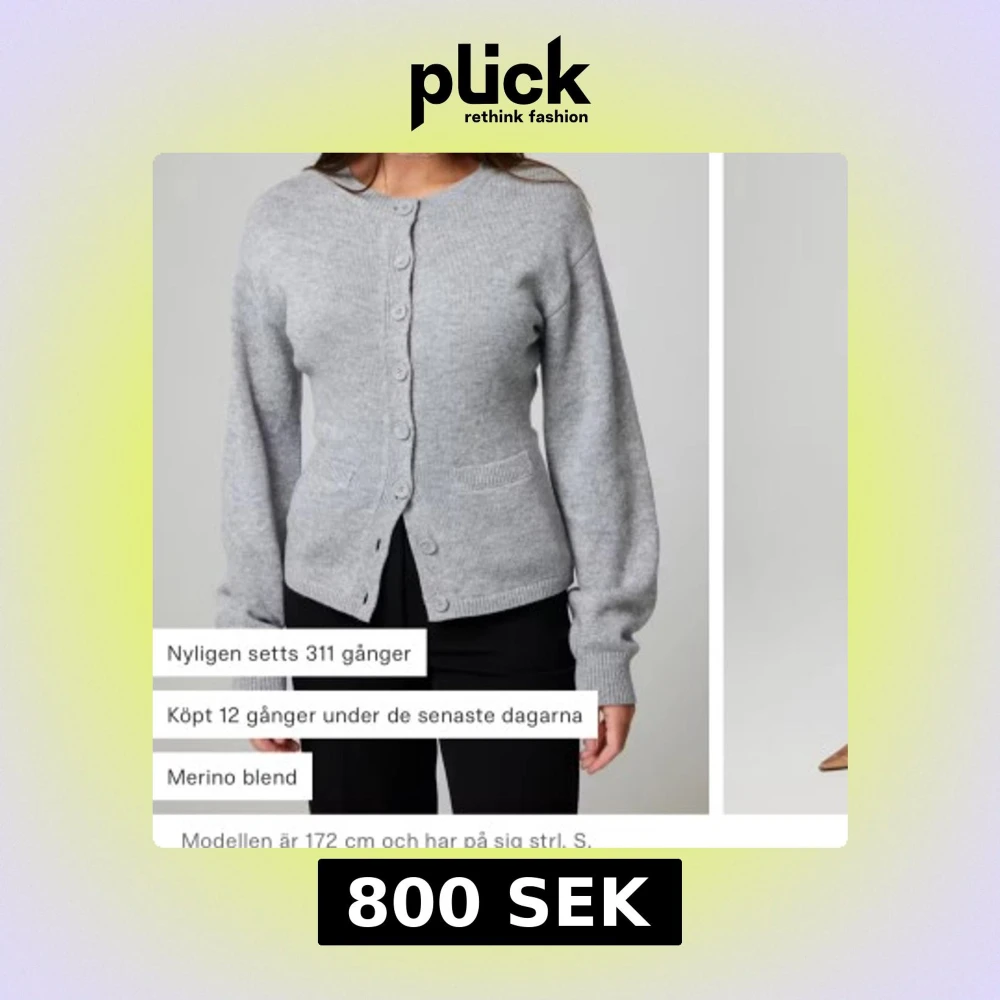 Säljer en stilren grå kofta i merinoullsblandning med knappar framtill. Koftan har långa ärmar och ribbade detaljer vid ärmslut och nederkant. Perfekt för kyliga dagar.från bilbok 900:-