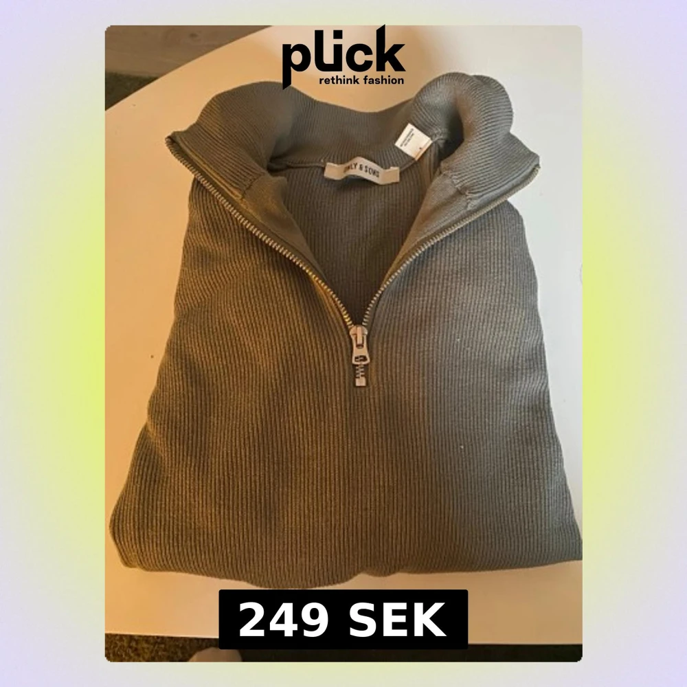 Snygg Grön stickad tröja från Only & Sons med ribbad struktur och halv dragkedja framtill. Tröjan har hög krage och långa ärmar, perfekt för lager på lager. Materialet är mjukt och stretchigt för extra komfort. Helt ny aldrig använd