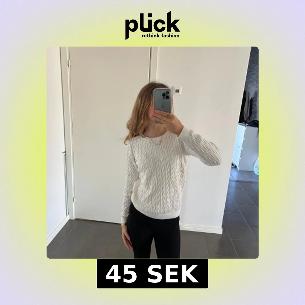 Säljer en stilren vit stickad tröja från Basic You i ekologisk bomull. Tröjan har ett klassiskt flätmönster och långa ärmar, perfekt för en mysig look. Passar bra till både jeans och kjol. Hör av dig vid intresse! 🤍