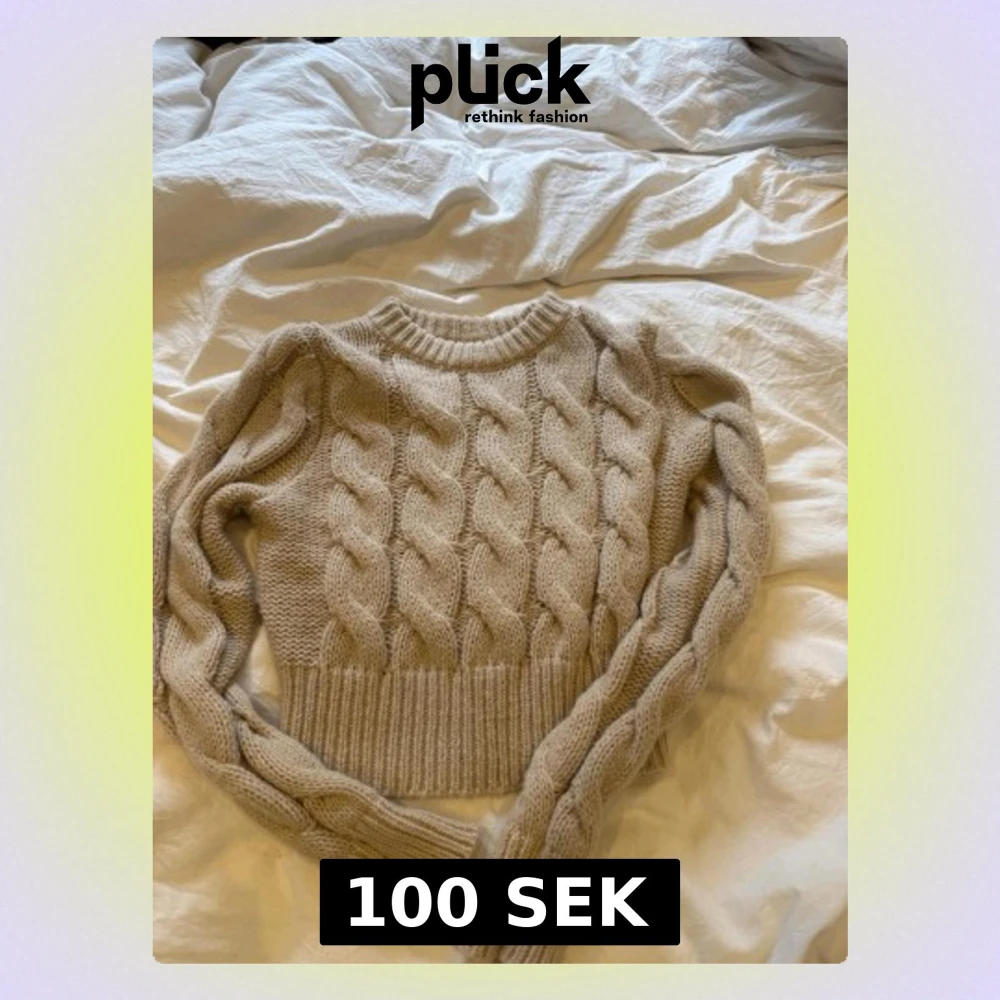 Säljer en beige kabelstickad tröja med grova flätmönster och ribbade muddar vid ärmslut, nederkant och hals. Tröjan har en croppad passform och är gjord i ett mjukt, tjockt garn. Jag kommer inte ihåg vart den är ifrån men skicka gärna prisförslag🤩 aldrig andvända