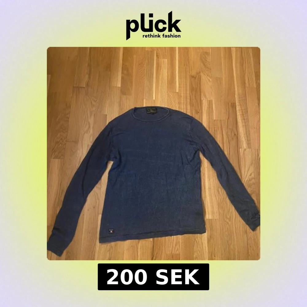 Säljer en snygg blå stickad tröja från Morris . Tröjan har rund halsringning och diskret logga nertill. Lite stor i storleken för mig så passar möjligen S/M.