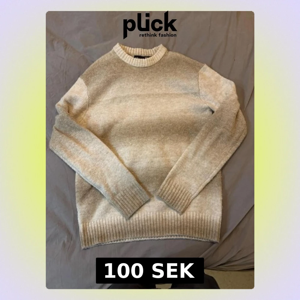 Mysig beige stickad tröja med rund halsringning och ribbade muddar vid ärmslut och nederkant. Perfekt för lager på lager under kyliga dagar. Enkel och stilren design som passar till det mesta.