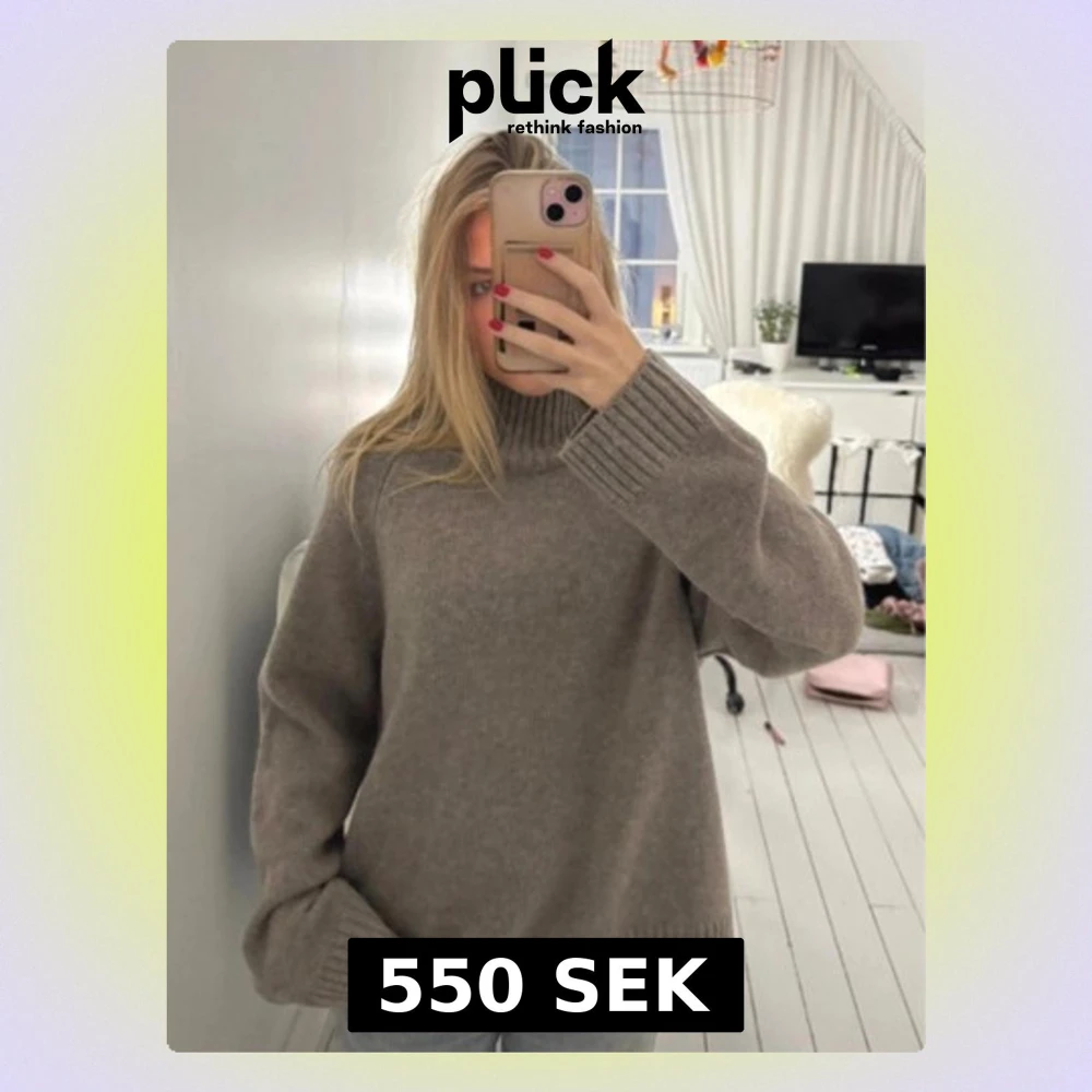Mysig beige stickad polotröja med bred ribbad kant vid ärmslut och nederkant. Tröjan har en relaxed, lite oversized passform och hög krage som håller dig varm under kyliga dagar. Perfekt att styla med jeans eller kjol för en chill look.