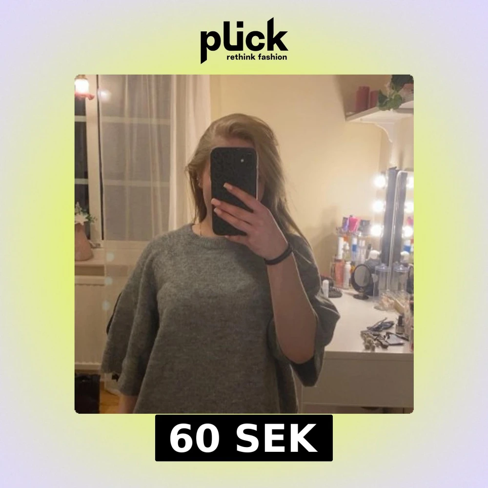 grå stickad tröja med trekvartsärmar. Från lager 157. Knappt anvånd då den är förstor