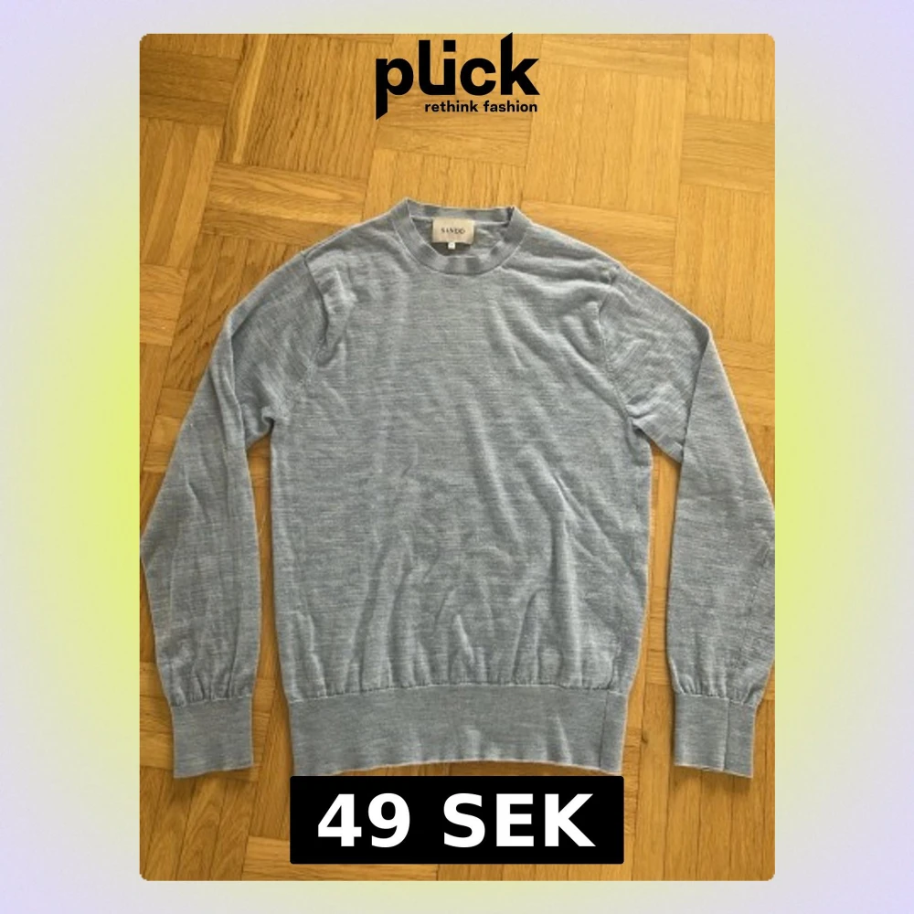 Ljusblå stickad tröja från Sandö med rund halsringning och ribbade muddar vid ärmslut och nederkant. Tröjan har en enkel och clean design som passar perfekt till jeans eller kjol. Materialet ser ut att vara mjukt och tunt, vilket gör den skön att bära.