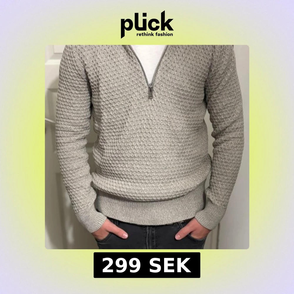 Snygg grå stickad tröja från Selected Homme med halv dragkedja. Tröjan är använd 2 gånger max och är därför väldigt bra skick.