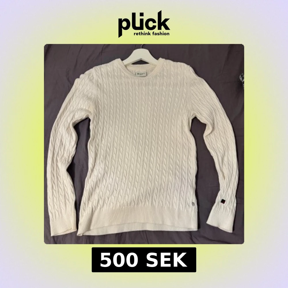 Vit kabelstickad tröja från redgreen med rund halsringning och diskret logga på ärmslutet. Tröjan har lång ärm och ribbade muddar för en klassisk look. Perfekt för lager-på-lager och snygg till både jeans och kjol.
