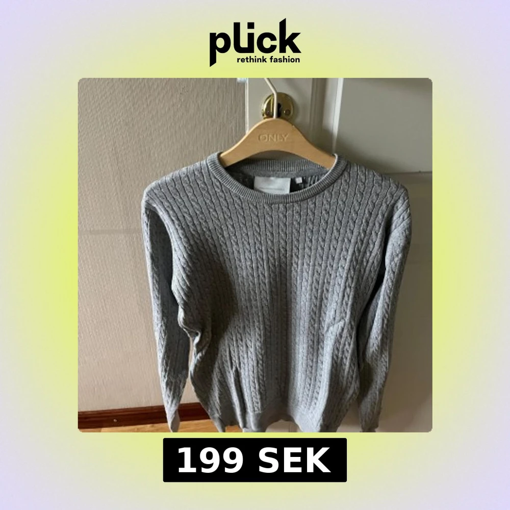 Snygg grå kabelstickad tröja med rund halsringning och långa ärmar. Tröjan har ett klassiskt flätmönster och är perfekt för lager-på-lager-stil. Skön och stilren att matcha med jeans eller kjol.