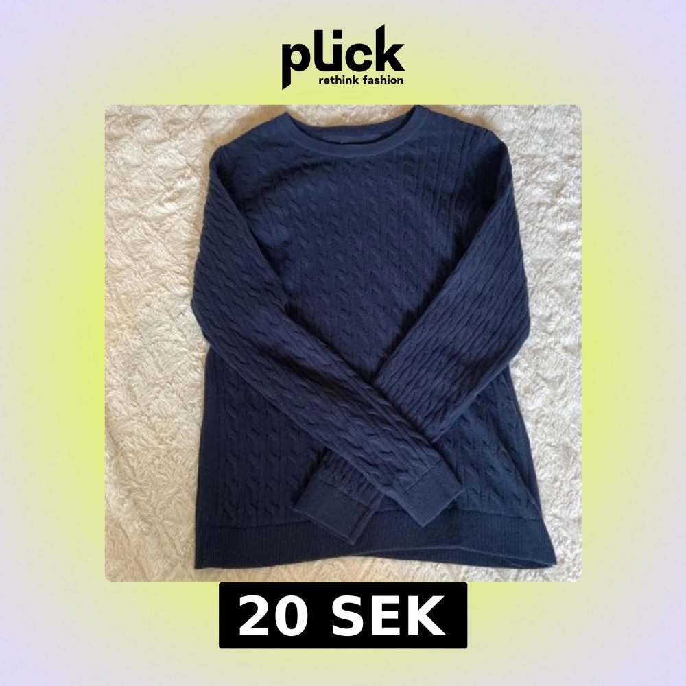 Mörkblå kabelstickad tröja från Basic You, Ullared, i ekologisk bomull. Klassisk rund halsringning och långa ärmar💗