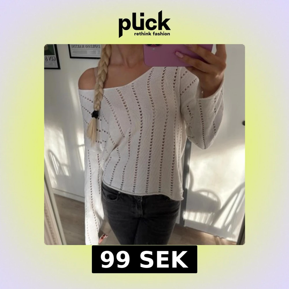 Säljer en vit stickad tröja från lager 157 med lång ärm och snyggt hålmönster! Tröjan har en v-ringad hals och kan bäras på olika sätt💗