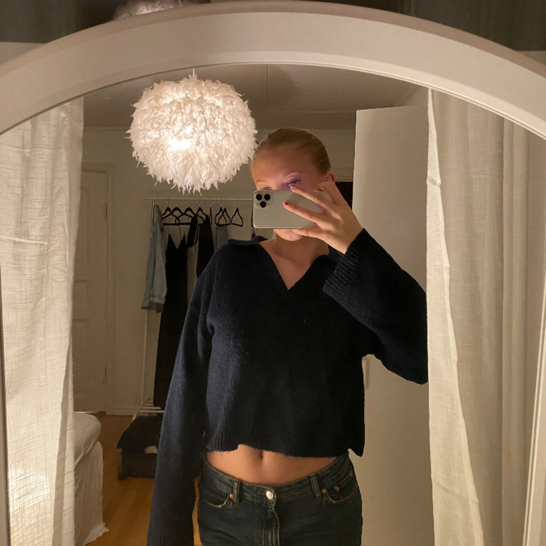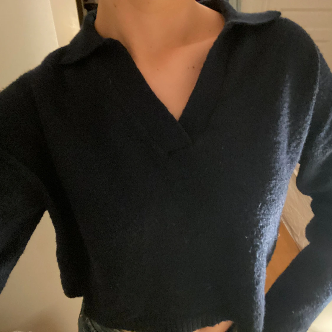 Tunt stickad tröja i marinblått!