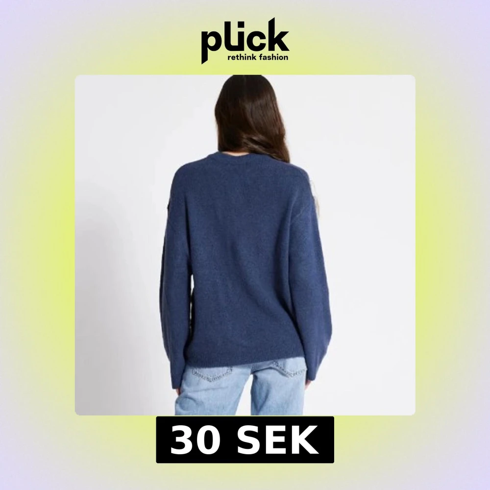 Mysig blå stickad tröja med avslappnad passform och rund hals. Perfekt för lager-på-lager och passar till jeans eller kjol. Långa ärmar och enkel design gör den lätt att matcha.