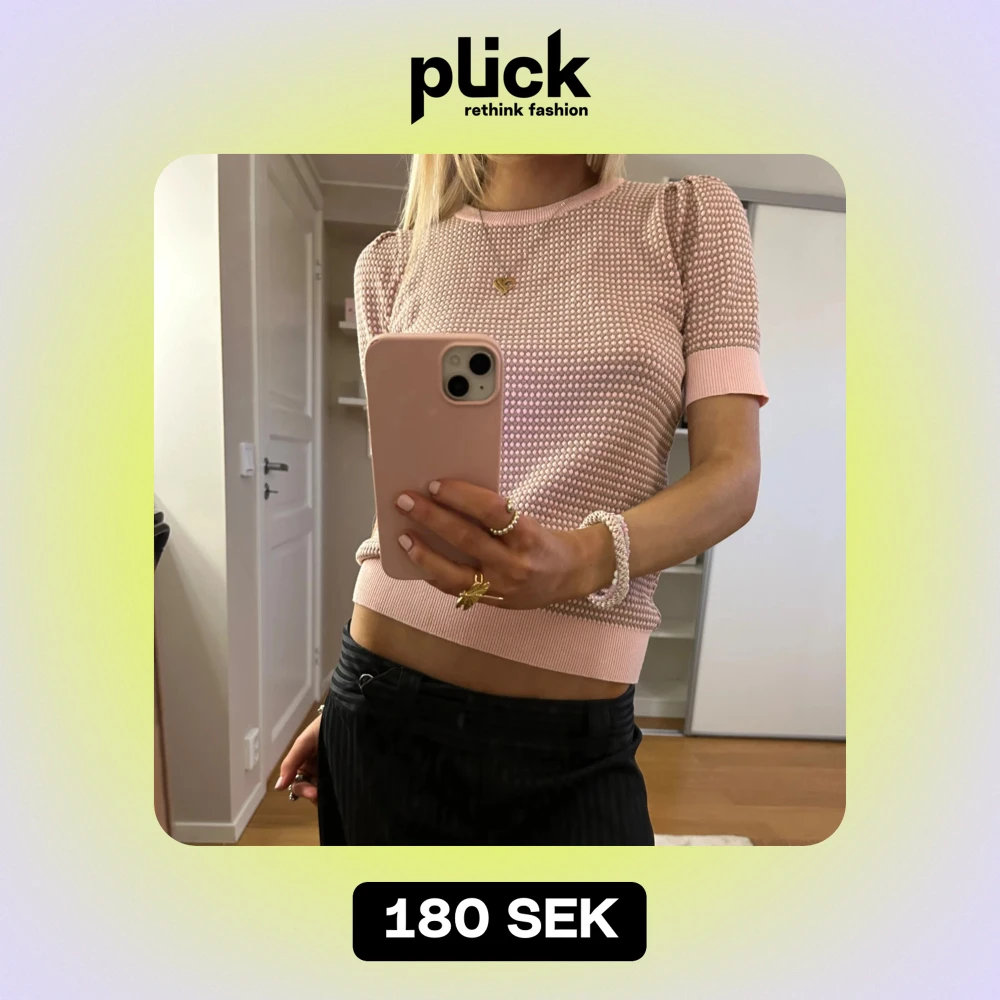 Säljer en superfin rosa stickad topp med korta ärmar och ett diskret mönster. Toppen är rosa/guldig med glitter i💖Den är i mycket bra skick och har ribbade kanter vid ärmslut och nederkant🎀
