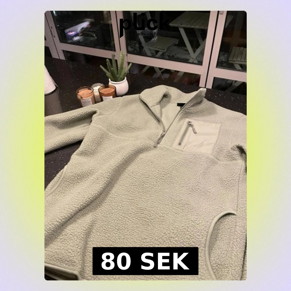 Mysig ljusgrön fleece tröja med halv dragkedja framtill och en praktisk bröstficka med dragkedja. Tröjan har hög krage och långa ärmar, perfekt för kyliga dagar. Materialet är mjukt och fluffigt för extra komfort.